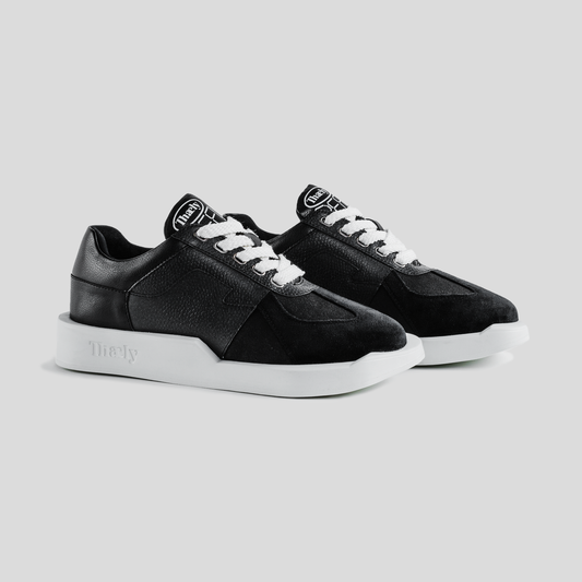Vegan and Cruelty-Free We believe in creating fashion without harming animals. All Thaely sneakers are 100% vegan, made with plant-based alternatives and cruelty-free adhesives, ensuring ethical practices at every step of production.